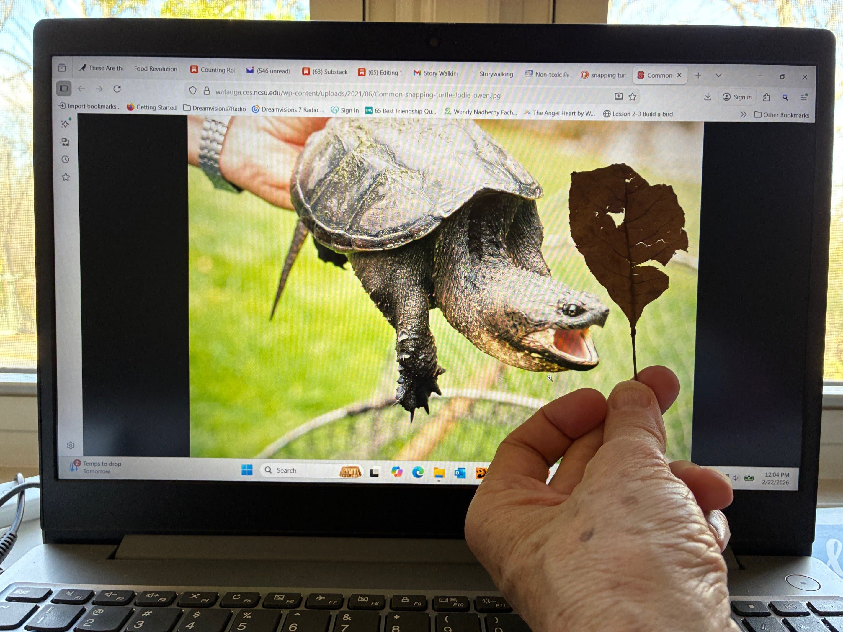 I stooped down to pick up the leaf and examined it in wonder. The shape reminded me of the head of a snapping turtle, with its sharp beak of a mouth and prominent nose. And this truly surprised me, because I was about to publish this post.