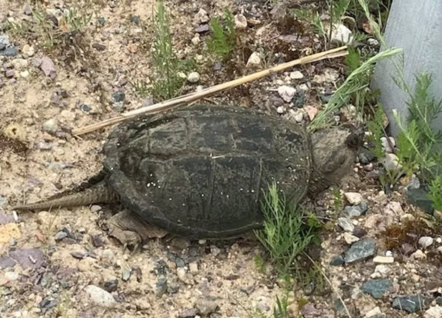 One morning, as my husband and I were walking along a busy bike path, a snapping turtle crawled up over the embankment and proceeded to cross in front of us. The ancient looking creature moved slowly, steadily and deliberately. It walked step by step, moving one foot forward at a time. Bikers and walkers stopped to watch in fascination until it reached to other side. We were all enchanted.